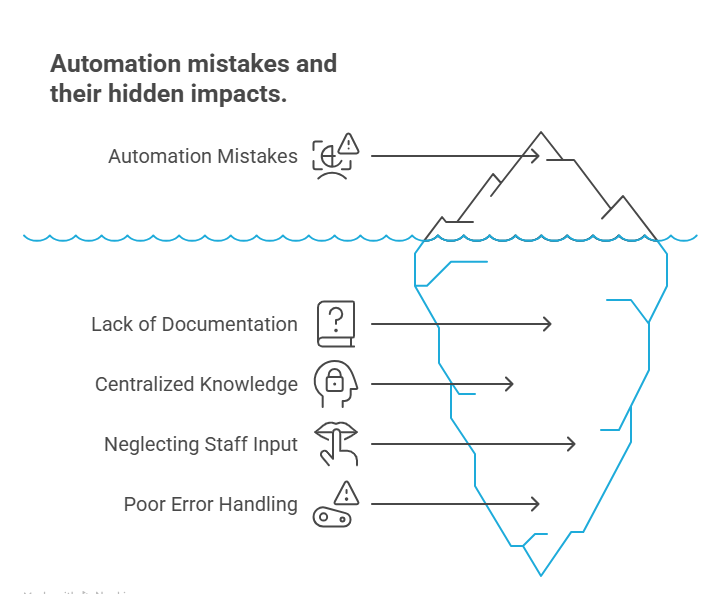 Introducing a dozen automations without onboarding creates user resistance. Staff may bypass systems, revert to email, or abandon updates altogether. When employees don’t understand the logic behind automation, they lose trust in the system. The fix isn’t just training — it’s involvement.