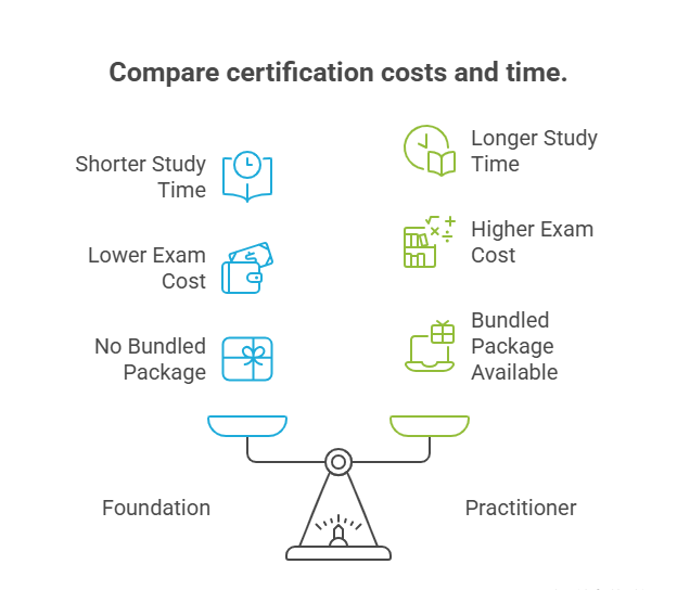 If you're opting for both levels together, many training providers offer Foundation + Practitioner bundles priced between $900–$1,500. These usually include exams, training access, support, and materials. While this might seem steep, the bundled route is 20–30% cheaper than enrolling in both separately.
