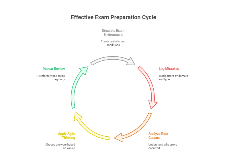 Focus on agile thinking, not memorization. Use question banks that train you to analyze, eliminate, and act like a certified professional. And most importantly, track your learning through mistakes, not just wins.