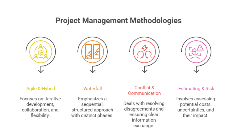 You won’t just get asked about project phases—you’ll get tested on conflict management, stakeholder engagement, forecasting, cost variance, team leadership, and more. Here’s how PMI clusters them.